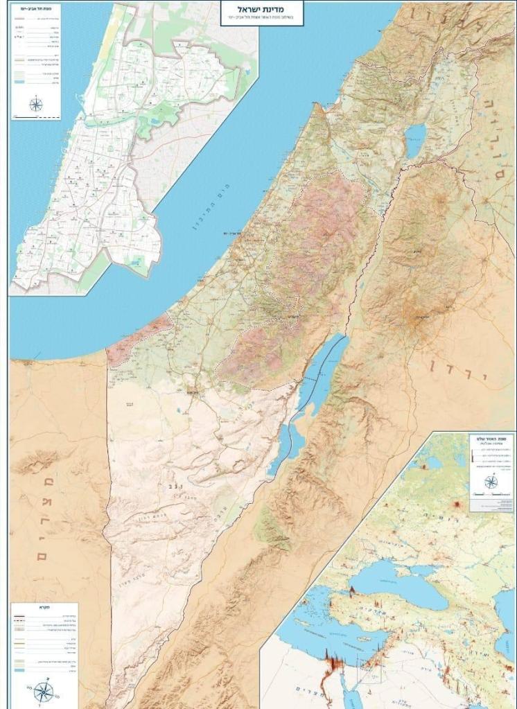 L’année dernière, le maire de Tel Aviv, Ron Huldaï, a décidé que soit accrochée la carte ci-dessous, qui fait apparaître la ligne verte, dans les lycées de sa ville. Il s’est rapidement fait reprendre par le ministère de l’éducation et l’affaire a provoqué un scandale aux dimensions nationales.