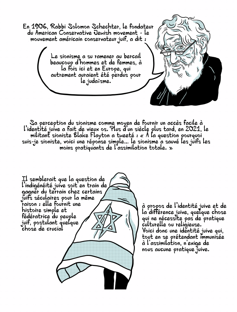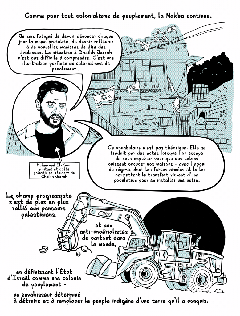 Cette bande-dessinée a initialement été publiée par Jewish Currents, le 13 octobre 2021, et traduite de l’anglais par des membres de Tsedek!.