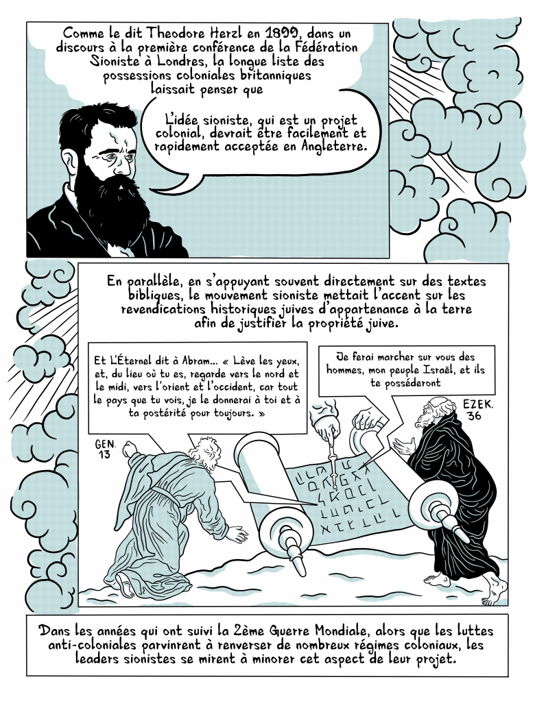Le sionisme, qu’il soit de tendance messianique ou libérale, a toujours reposé sur l’affirmation que les Juif·ves sont les véritables souverain·es de la Terre d’Israël, «de retour» chez elles et eux après un exil de 2000 ans. Cette idée a été, et est utilisée, afin de justifier l’instauration d’un régime suprémaciste juif en Palestine.