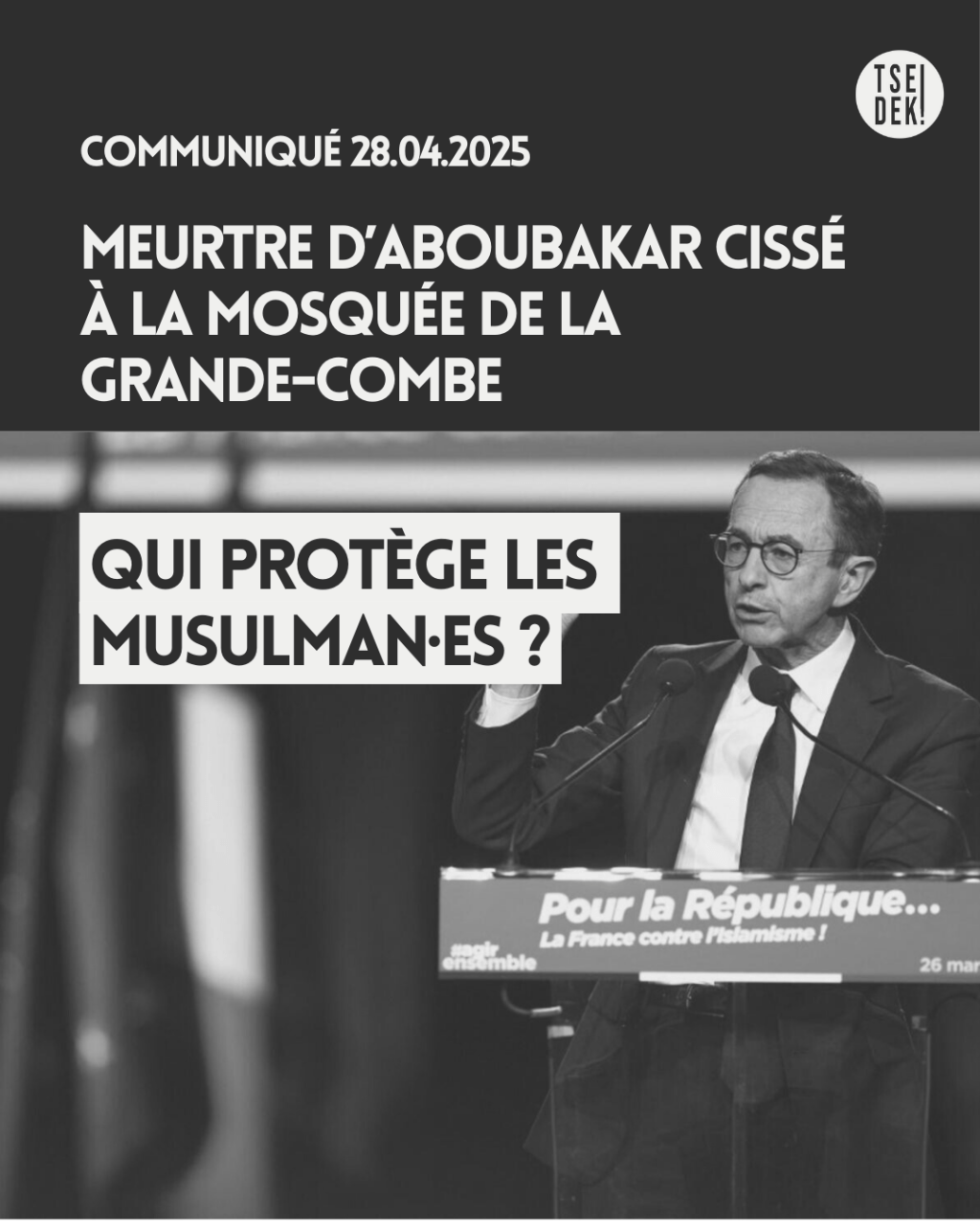 Vendredi 25 avril au matin, Aboubakar Cissé, un jeune homme d’une vingtaine d’années, a été sauvagement assassiné à la mosquée Khadidja de La Grande-Combe, dans le Gard. Bien que l’enquête soit toujours en cours, le mobile islamophobe fait peu de doute : l’assaillant a filmé sa victime en revendiquant son attaque et en s’écriant « ton Allah de merde ». Tsedek! présente ses plus sincères condoléances à la famille d’Aboubakar Cissé et à ses proches, et affirme son soutien à la communauté musulmane après ce drame.